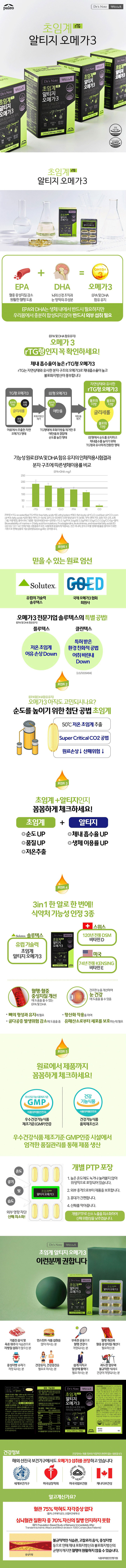 | 기능정보 | ① [EPA 및 DHA 함유 유지]혈중 중성지질개선 · 혈행개선 · 건조한 눈을 개선하여 눈 건강에 도움을 줄 수 있음 ② [비타민D] 칼슘과 인이 흡수되고 이용되는데 필요, 뼈의 형성과 유지에 필요, 골다공증 발생 위험 감소에 도움을 줌 ③ [비타민E] 항산화 작용을 하여 유해산소로부터 세포를 보호하는데 필요 |